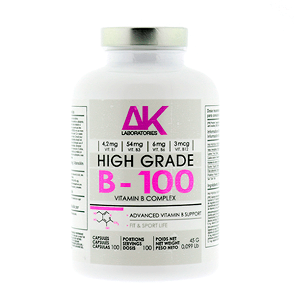 El B – 100 es un avanzado complejo vitamínico de AK Laboratories que incluye las ocho vitaminas mayormente esenciales del conjunto B, especialmente para que tomes este producto todos los días y de esa manera ayudes a tu cuerpo a cubrir enteramente las demandas vitamínicas. Además este suplemento tiene una alta concentración en sus cápsulas para que disfrutes resultados sumamente satisfactorios.